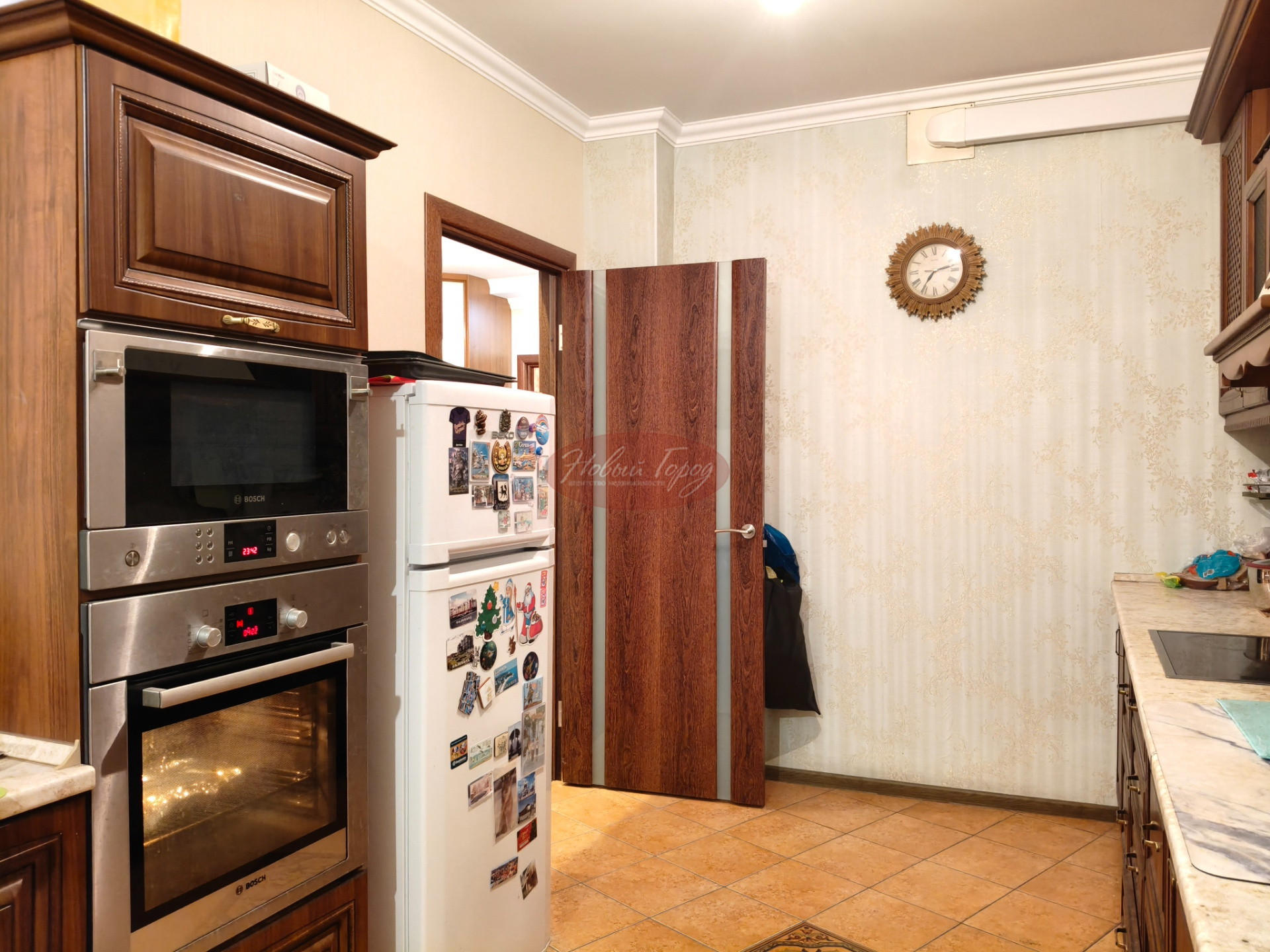 Отделка выполнена в добротном классическом стиле. Остается встроенная мебель, кухонный гарнитур, бытовая техника в кухне, система очистки воды, бойлер.