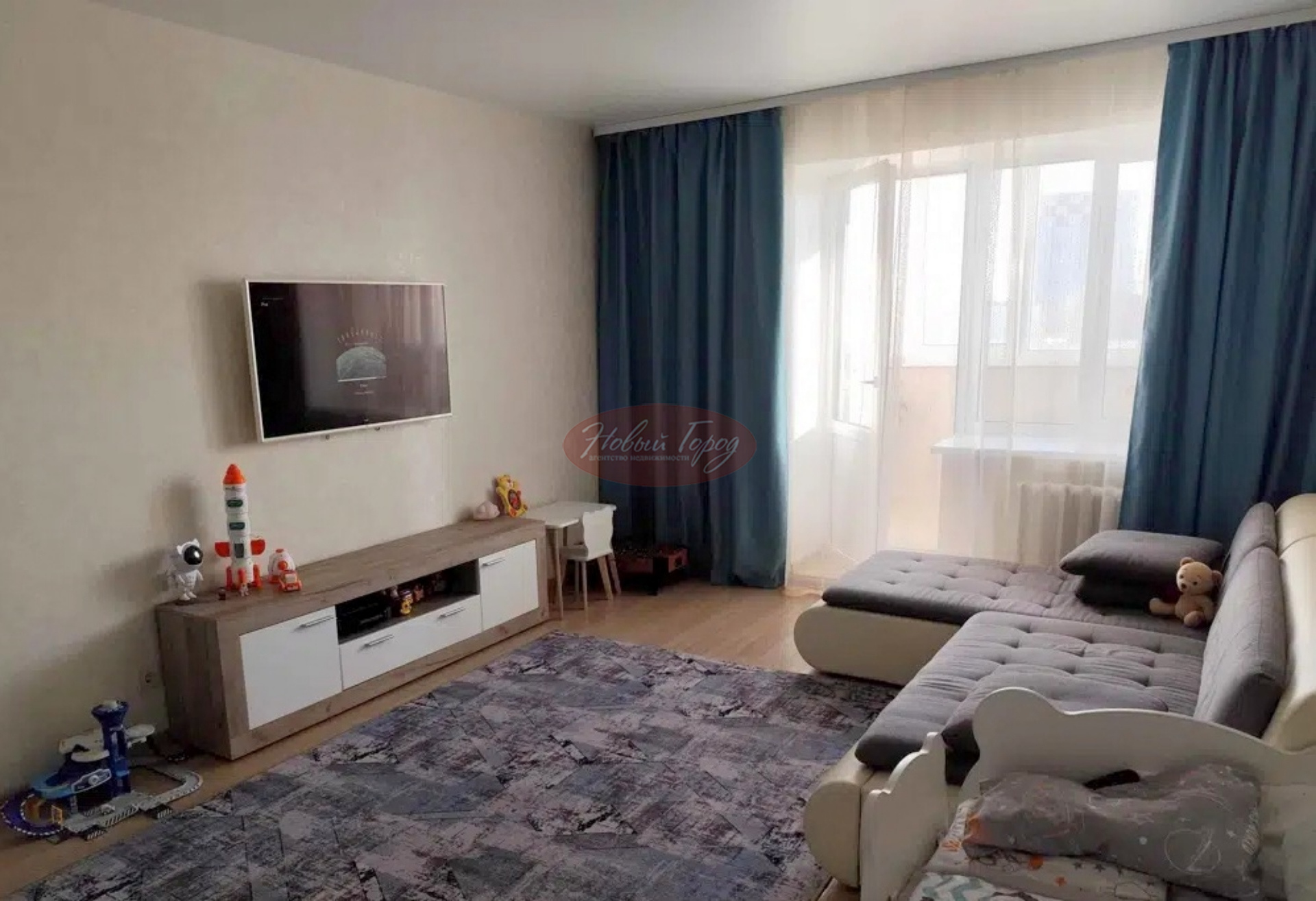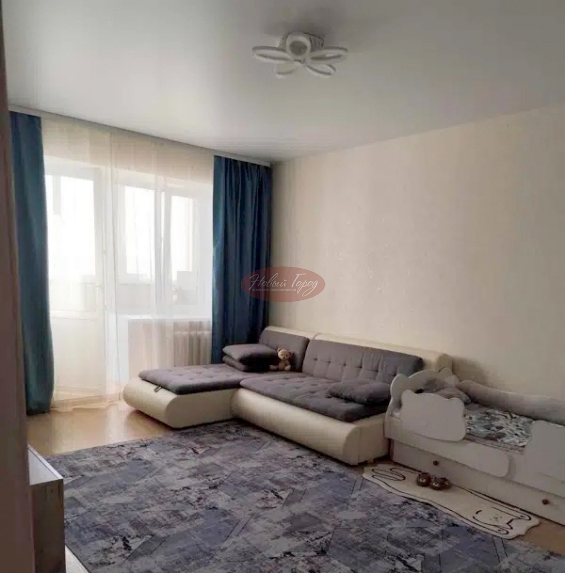 В квартире выполнен дизайнерский ремонт, в комнате и на лоджии - ламинат 33 класса, потолки натяжные, на стенах обои.
