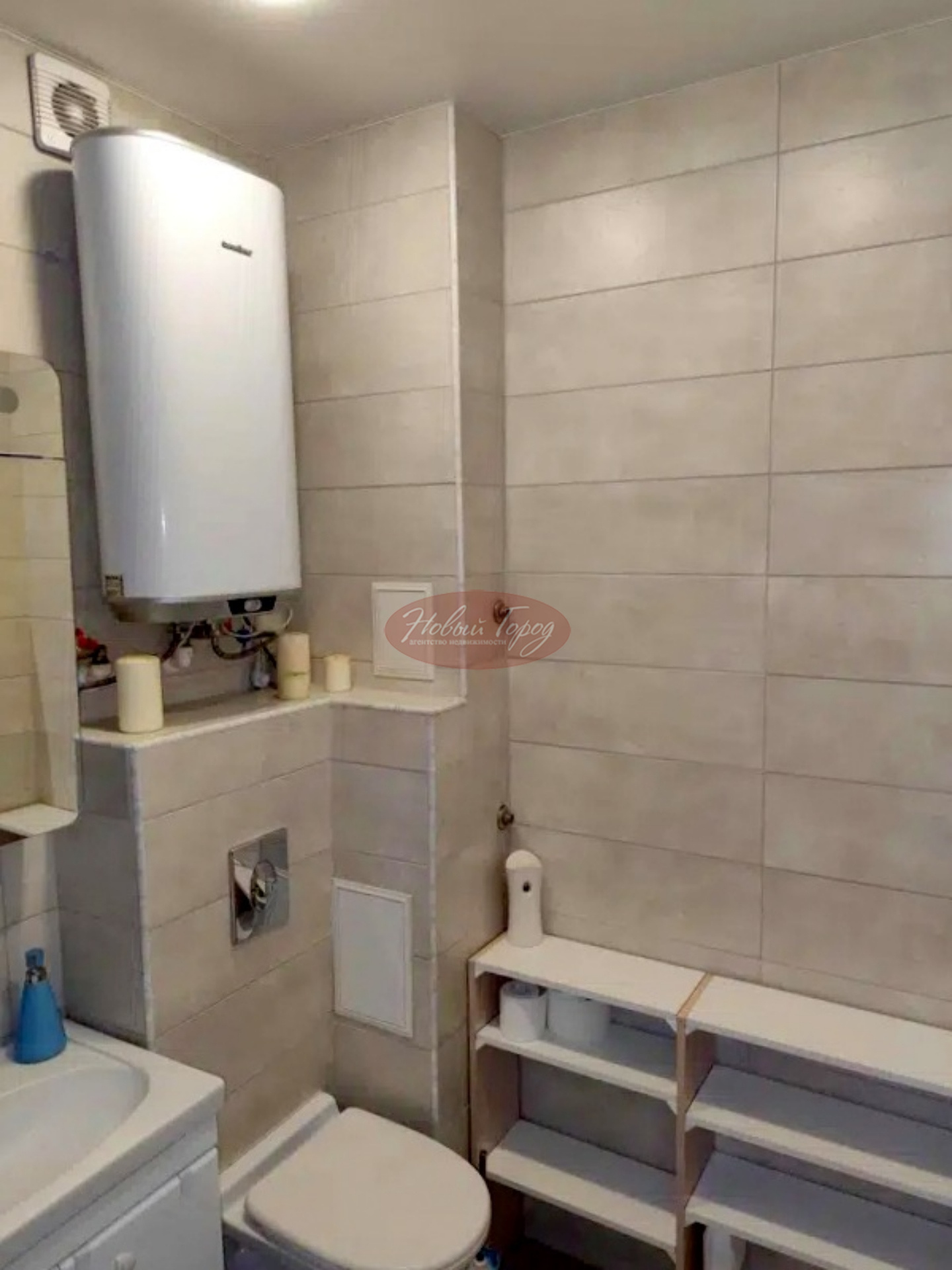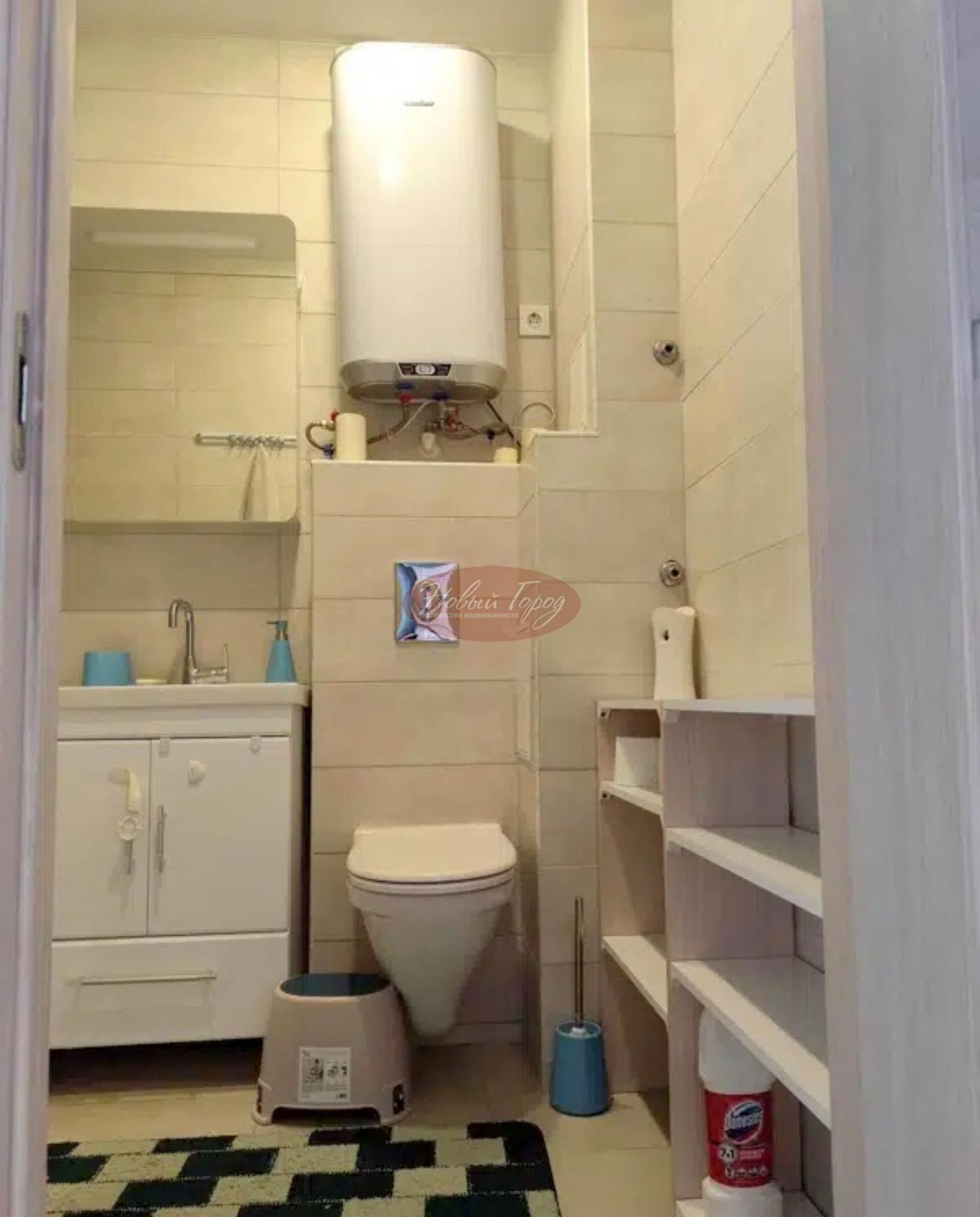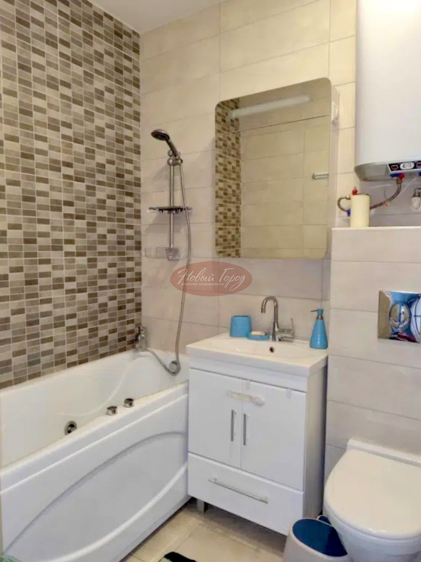 Сан узел совмещенный ,выложен кафельной плиткой , ванна с гидромассажем,пол выложен плиткой из керамогранита.
