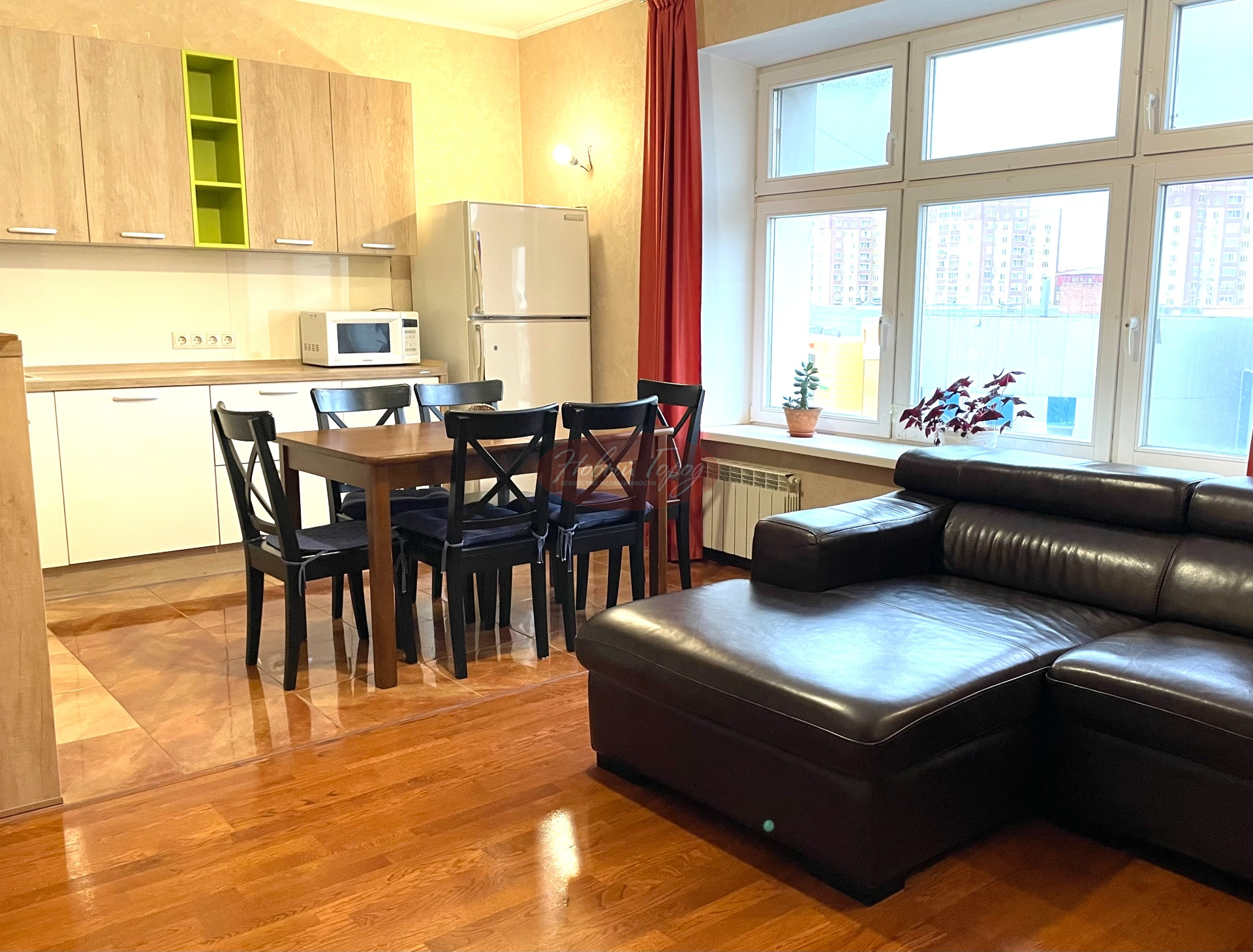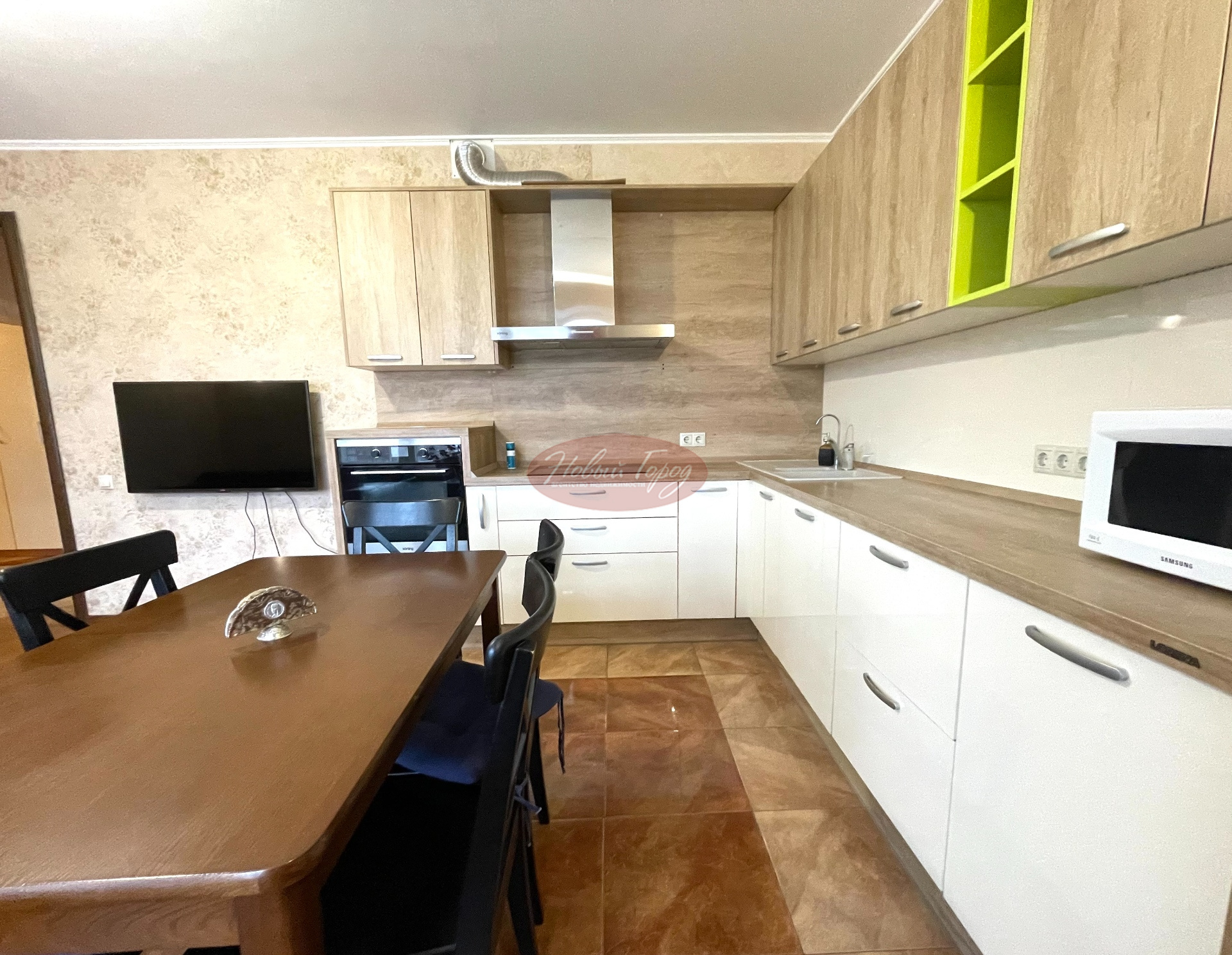 посудомоечная машина, микроволновая печь, холодильник, фильтр питьевой воды, телевизор, теплый пол на кухне и в санузлах,
