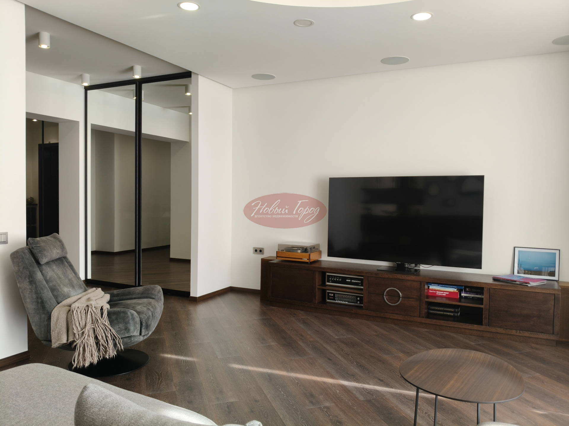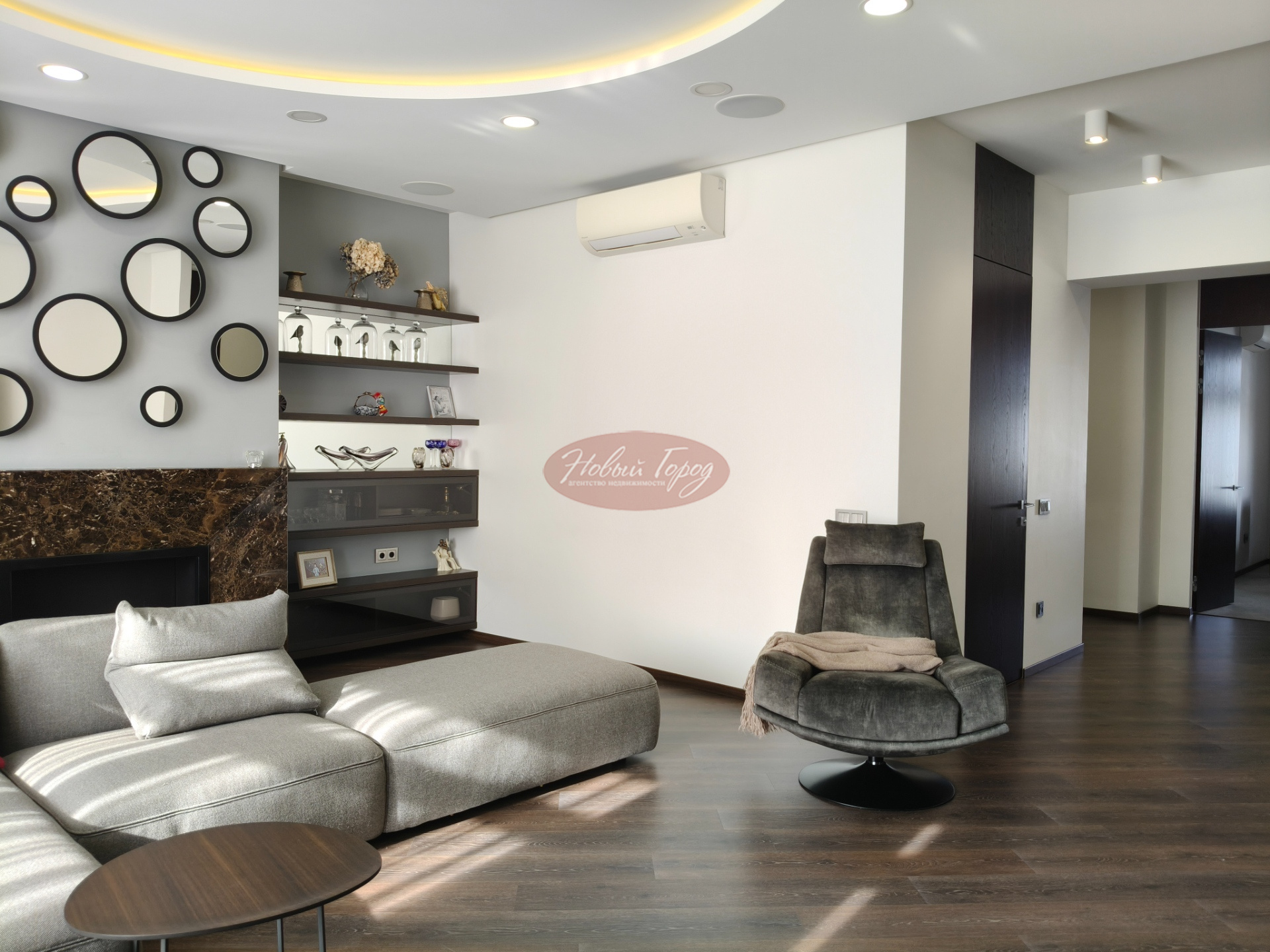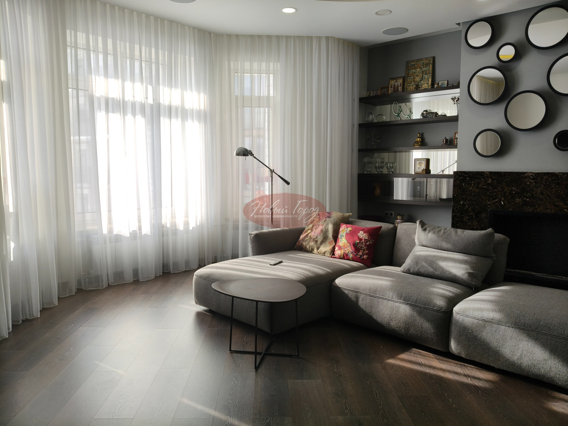 Просторный зал с камином,