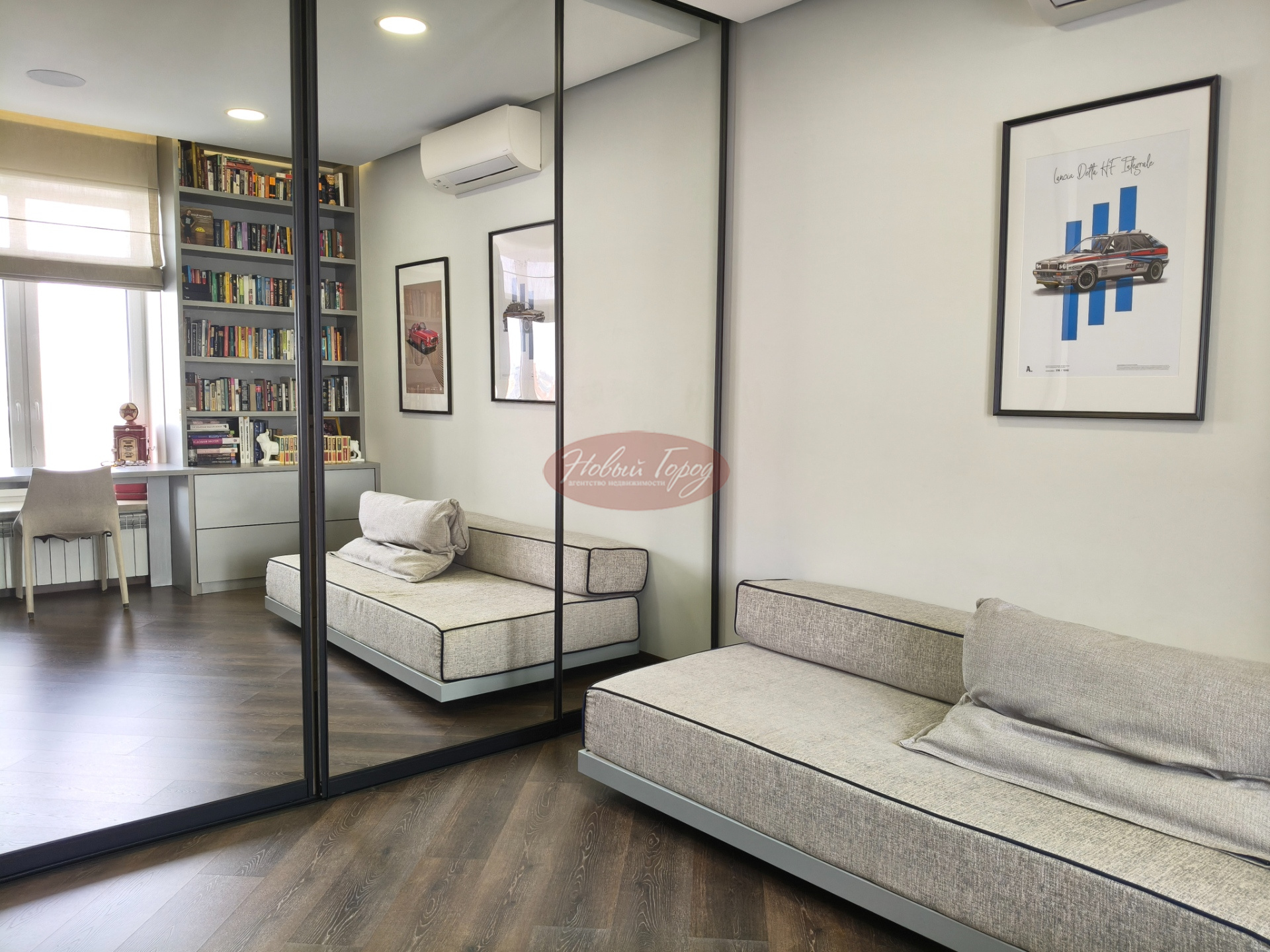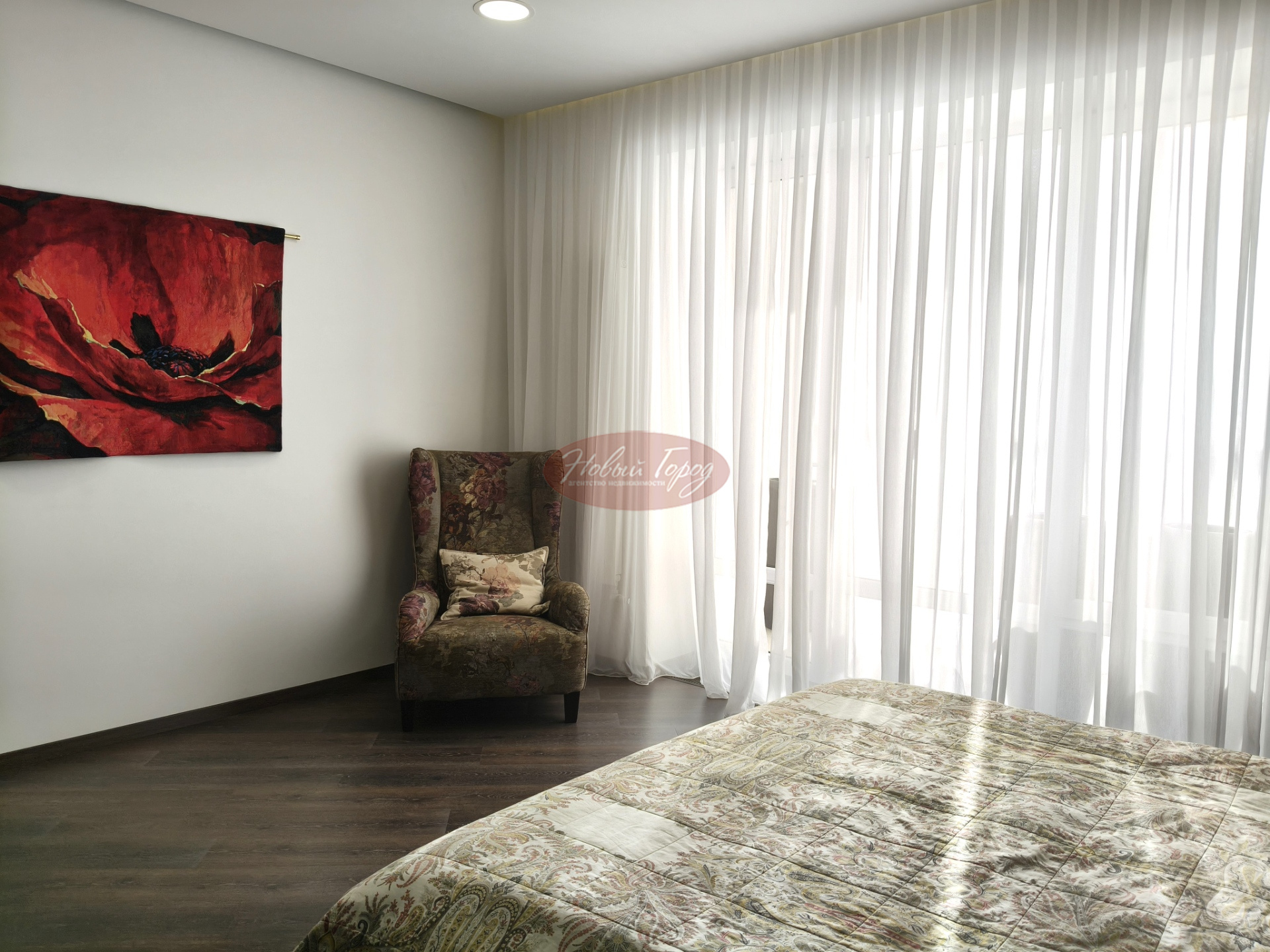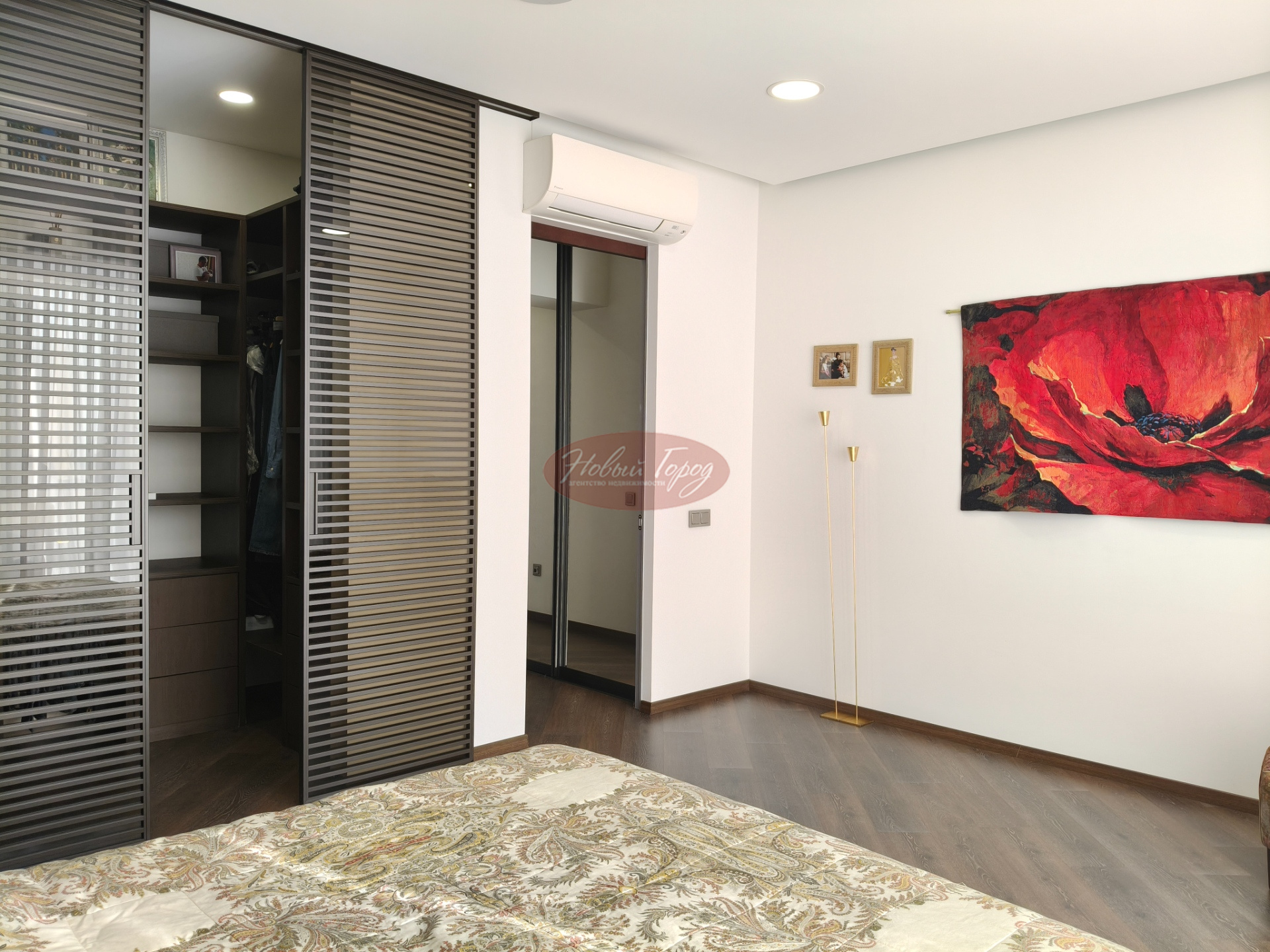 В квартире три спальни, зал и кухня, 2 санузла, гардеробная и застекленная лоджия.